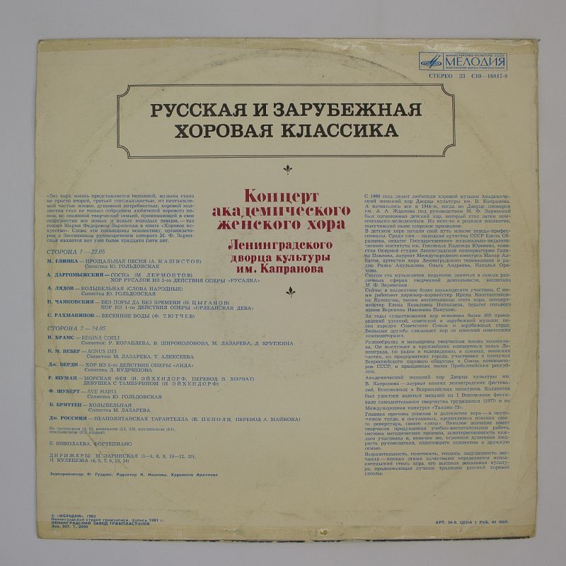 Академический женский хор Ленинградского дворца культуры им. Капранова – Русская и зарубежная хоровая классика / Концерт