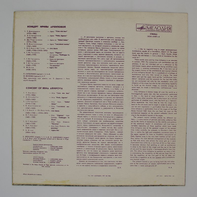 Ирина Архипова — выдающаяся певица, чьё исполнение арий эпохи барокко поражает глубиной и эмоциональностью. Альбом «Арии эпохи барокко» представляет собой коллекцию великолепных произведений, которые перенесут вас в мир музыки XVII–XVIII веков.