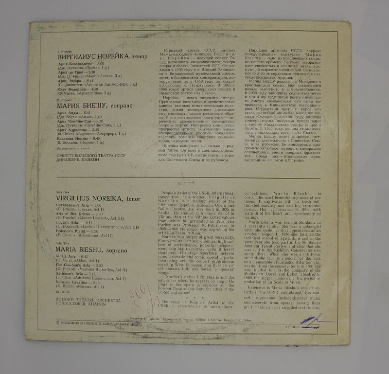 Откройте для себя магию оперных арий на виниле! Виргилиус Норейка и Мария Биешу представляют незабываемый альбом «Арии из опер».