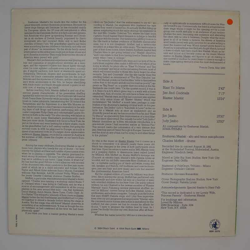 Погрузитесь в атмосферу 80-х с виниловым альбомом Keshavan Maslak With Charles Moffett — «Blaster Master»!