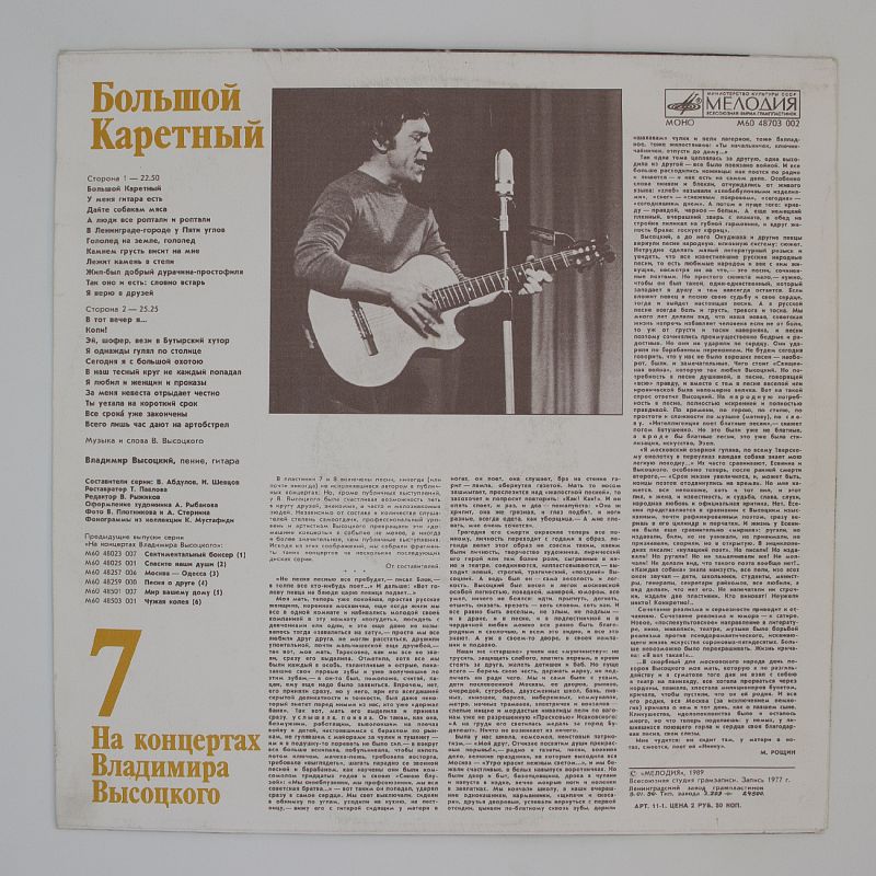 Альбом «Большой Каретный» — это не только музыка, но и история. Каждая песня — это маленький рассказ о жизни, о людях, о времени. Обволакивающий и гипнотический звук винила переносит нас в ту эпоху, позволяя почувствовать атмосферу того времени.