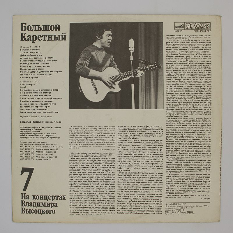 Виниловая пластинка Владимир Высоцкий - Большой каретный