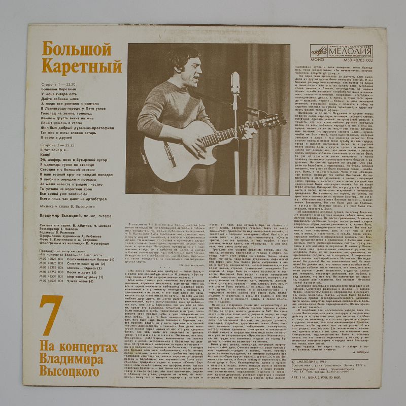 Альбом «Большой Каретный» — это не только музыка, но и история. Каждая песня — это маленький рассказ о жизни, о людях, о времени. Обволакивающий и гипнотический звук винила переносит нас в ту эпоху, позволяя почувствовать атмосферу того времени.