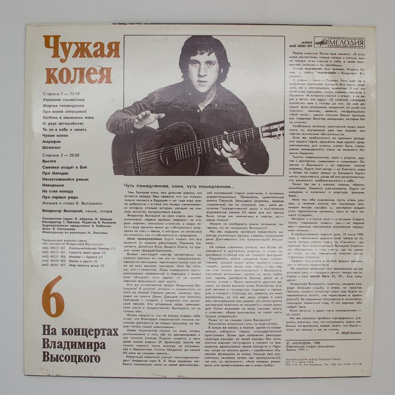 Не упустите возможность создать идеальный вечер под звуки «Чужой Колеи»! Погрузитесь в тёплый аналоговый звук и почувствуйте всю глубину и искренность песен Высоцкого. Успейте купить виниловую пластинку «Чужая Колея» — идеальный подарок для меломана.