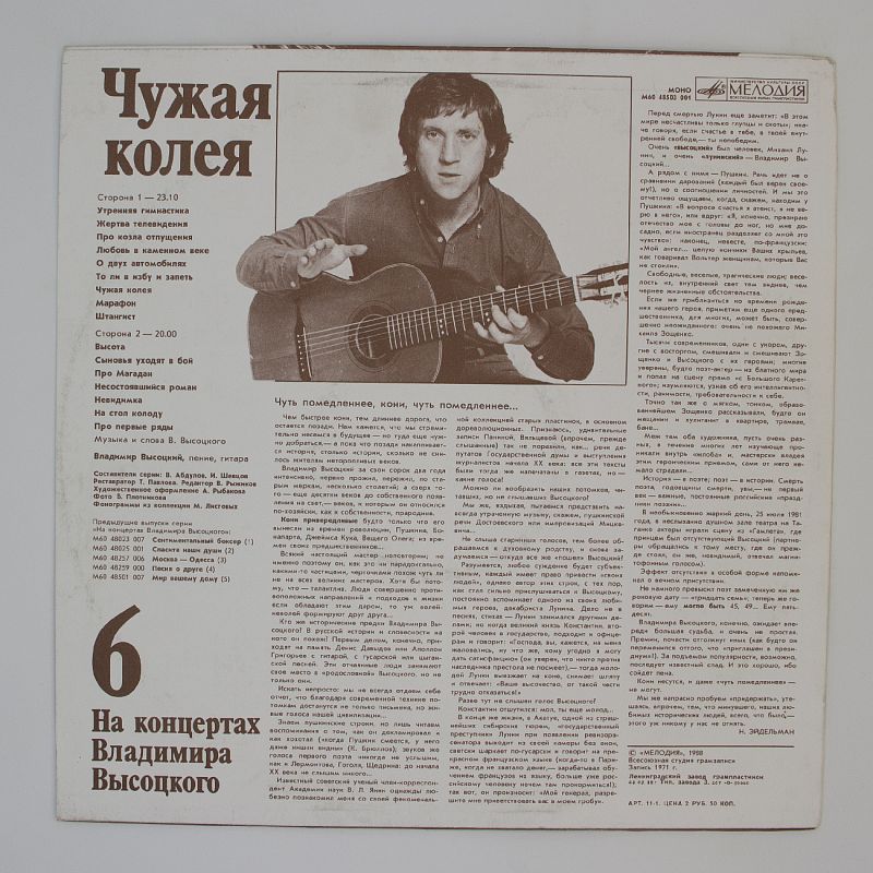 Не упустите возможность создать идеальный вечер под звуки «Чужой Колеи»! Погрузитесь в тёплый аналоговый звук и почувствуйте всю глубину и искренность песен Высоцкого. Успейте купить виниловую пластинку «Чужая Колея» — идеальный подарок для меломана.