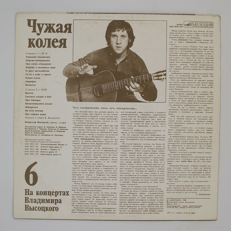 Не упустите возможность создать идеальный вечер под звуки «Чужой Колеи»! Погрузитесь в тёплый аналоговый звук и почувствуйте всю глубину и искренность песен Высоцкого. Успейте купить виниловую пластинку «Чужая Колея» — идеальный подарок для меломана.