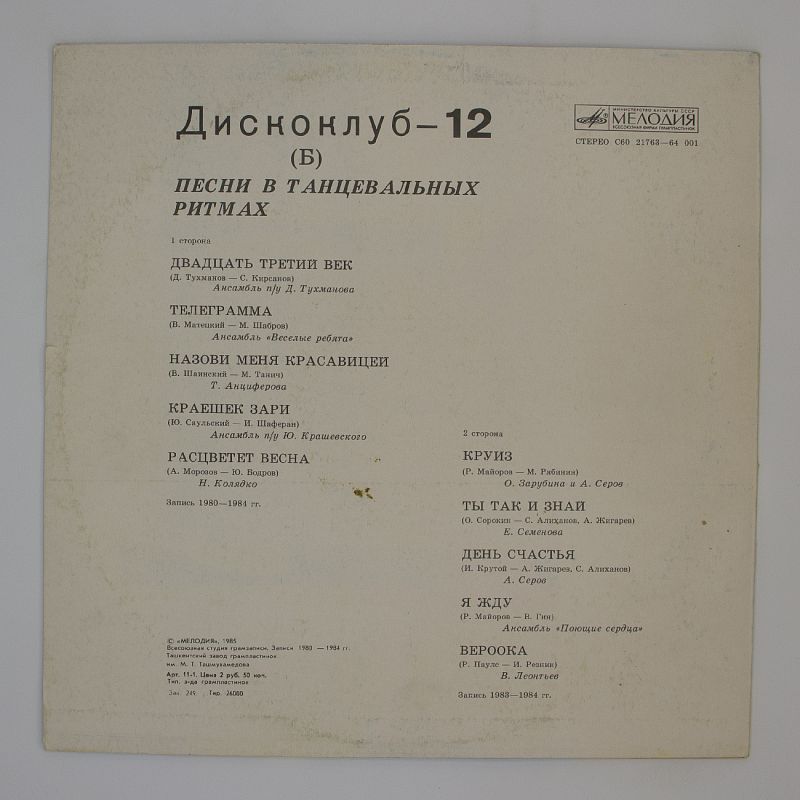 Альбом «Дискоклуб-12 (Б)» — это настоящий праздник для поклонников музыки в стиле диско. В него вошли хиты, которые звучали на танцплощадках и дискотеках в 70-80-е годы.