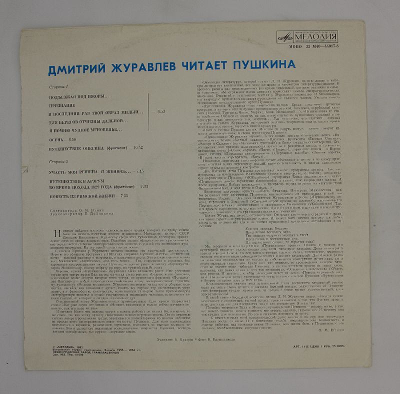 Дмитрий Журавлёв — читает Пушкина: погрузитесь в мир классики на виниле!
