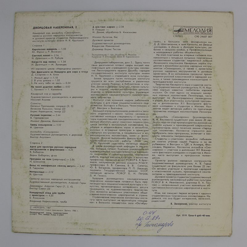 Откройте для себя волшебный мир классической музыки с альбомом «Дворцовая набережная, 2» от хора студентов Ленинградского института культуры!