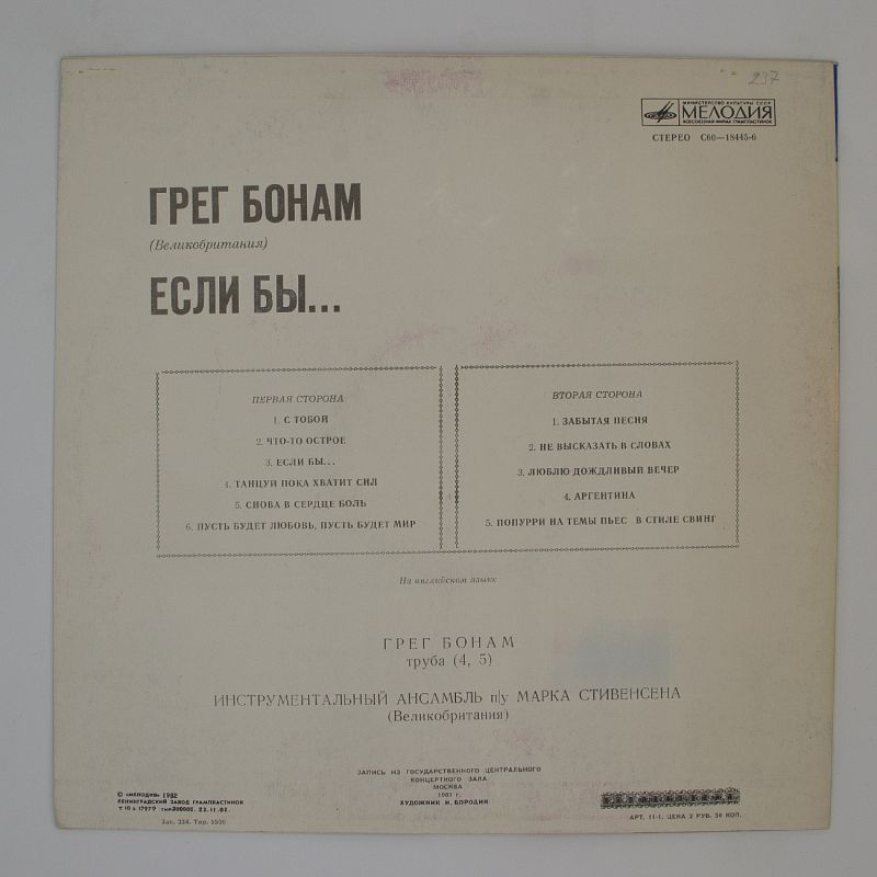 Погрузитесь в тёплый аналоговый звук виниловой пластинки и позвольте музыке Грега Бонэма захватить вас. Создайте идеальный вечер с альбомом «Если бы...» и окунитесь в мир глубоких эмоций и незабываемых мелодий. Успейте купить этот музыкальный шедевр, пока он есть в наличии!
