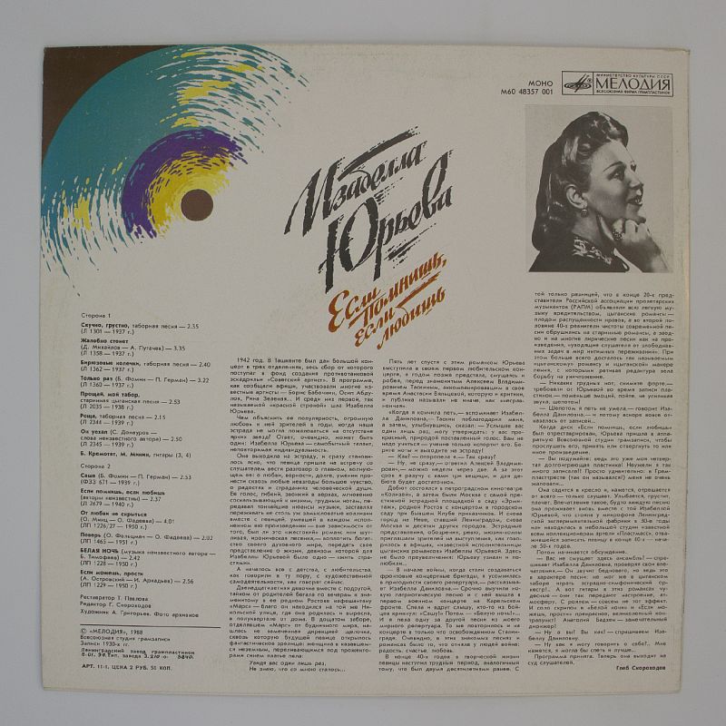 Откройте для себя чарующий мир советской эстрады с виниловой пластинкой Изабеллы Юрьевой «Если Помнишь, Если Любишь»!