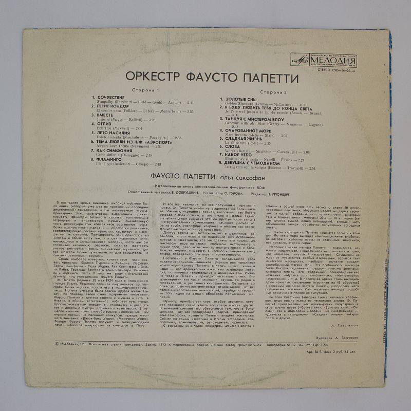 Погрузитесь в тёплый аналоговый звук и позвольте себе насладиться каждым моментом этого альбома. Создайте идеальный вечер с музыкой Фаусто Папетти и почувствуйте, как она оживает в ваших руках. Успейте купить этот шедевр и откройте для себя новые грани музыкального искусства!