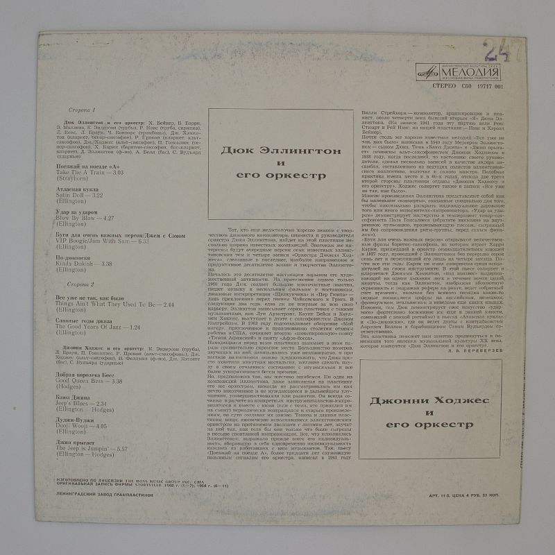 Встречайте альбом, который перенесёт вас в эпоху джаза! Легендарный Дюк Эллингтон и его оркестр, а также виртуоз Джонни Ходжес с его оркестром создали неповторимые композиции, которые звучат актуально и сегодня.