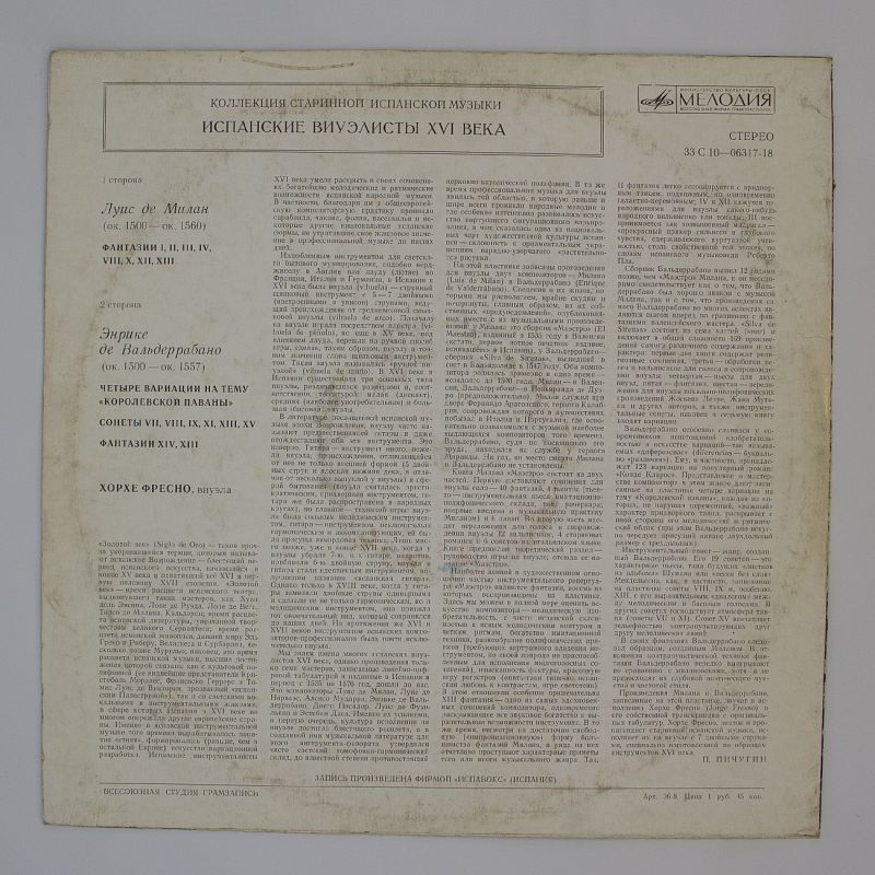 Не упустите возможность создать идеальный вечер с виниловой пластинкой «Испанские Виуэлисты XVI Века». Погрузитесь в тёплый аналоговый звук и насладитесь красотой испанской музыки!