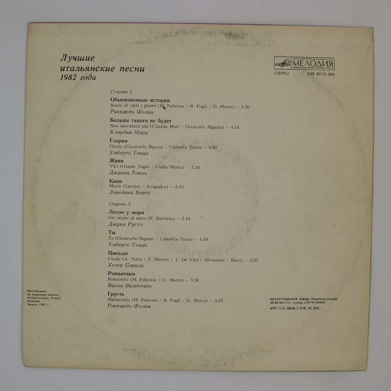 Не упустите свой шанс создать идеальный вечер с этим потрясающим альбомом. Погрузитесь в тёплый аналоговый звук винила и насладитесь лучшими итальянскими песнями 1982 года. Количество пластинок ограничено, поэтому не откладывайте покупку. Добавьте его в корзину прямо сейчас и подарите себе незабываемые музыкальные впечатления!