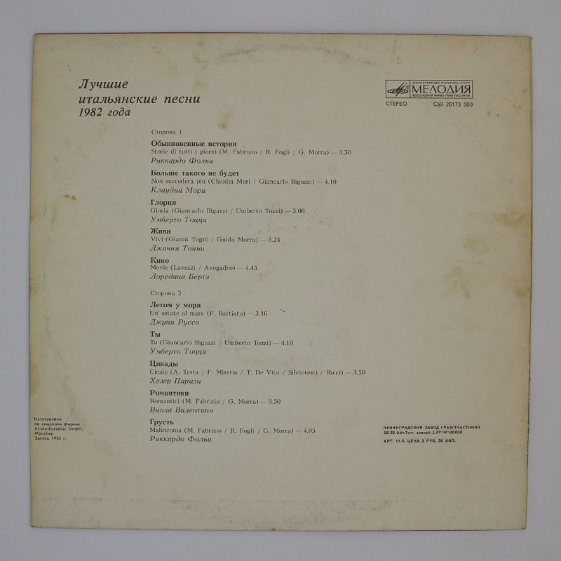 Не упустите шанс создать идеальный вечер с виниловой пластинкой «Italo-Hits (Лучшие Итальянские Песни 1982 Года)». Погрузитесь в тёплый аналоговый звук и насладитесь лучшими итальянскими хитами!