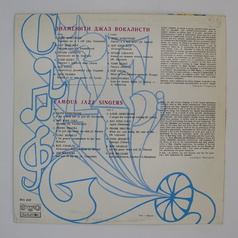Откройте для себя магию джаза на виниле! «Известные джазовые певцы» — это коллекция хитов от легенд жанра, которая перенесёт вас в эпоху элегантности и страсти.