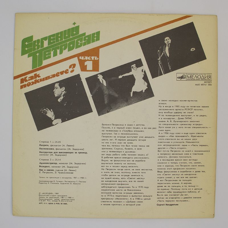 Евгений Петросян: как поживаете? Часть 1 — откройте для себя новую грань юмора на виниле!