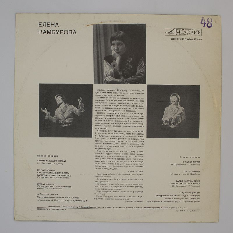Не упустите возможность погрузиться в тёплый аналоговый звук и открыть для себя новые грани музыкального искусства. Добавьте этот альбом в корзину и создайте идеальный вечер с музыкой Елены Камбуровой!