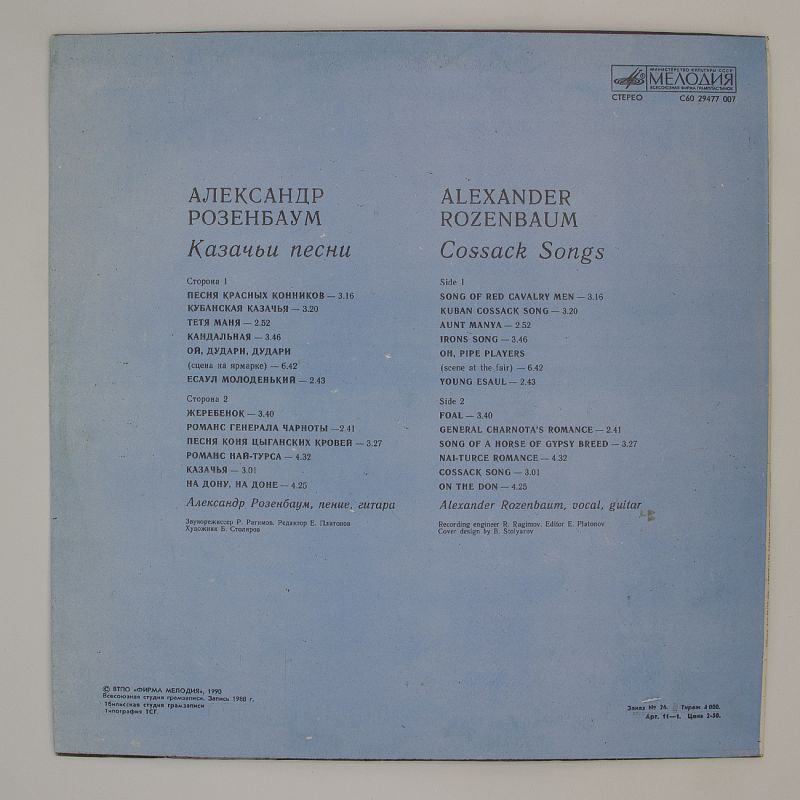 Не упустите возможность создать идеальный вечер с музыкой Александра Розенбаума! Добавьте «Казачьи Песни» в свою коллекцию и окунитесь в атмосферу казачьей культуры. Успейте купить виниловую пластинку, пока она есть в наличии!