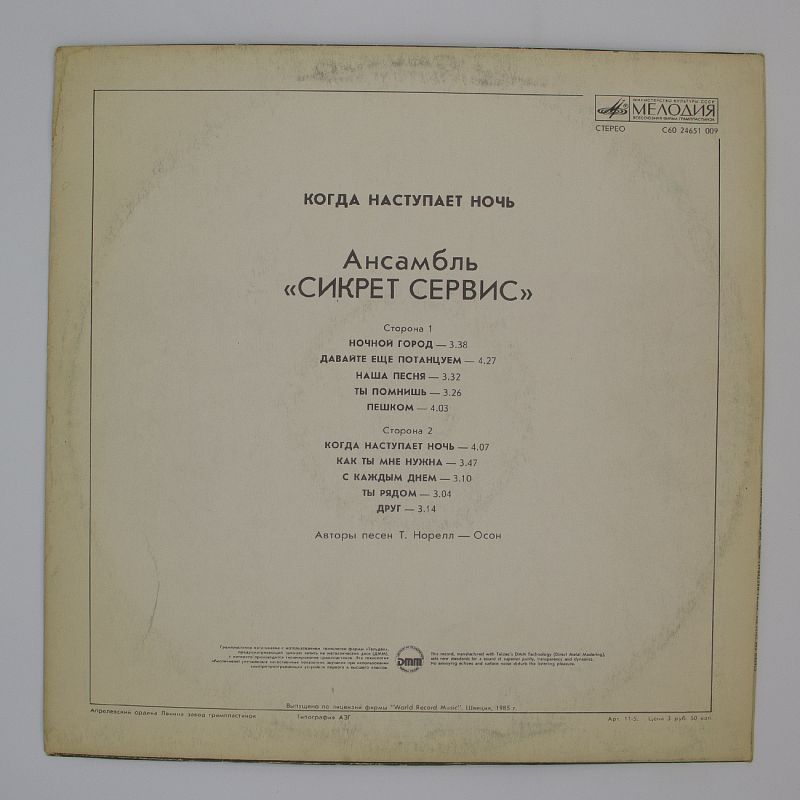 Secret Service — группа, которая не нуждается в особом представлении для любителей музыки 80-х. Их альбом «Когда наступает ночь» — это настоящий музыкальный коктейль из энергичных ритмов и запоминающихся мелодий.