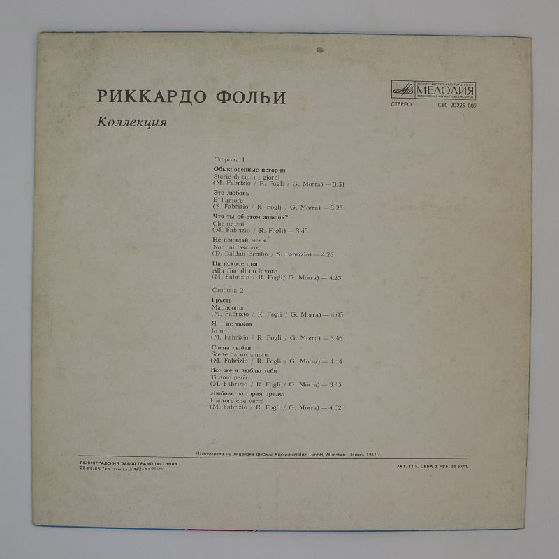Риккардо Фольи — один из самых ярких представителей итальянской эстрады. Альбом «Коллекция» — это настоящий подарок для всех любителей качественной музыки.