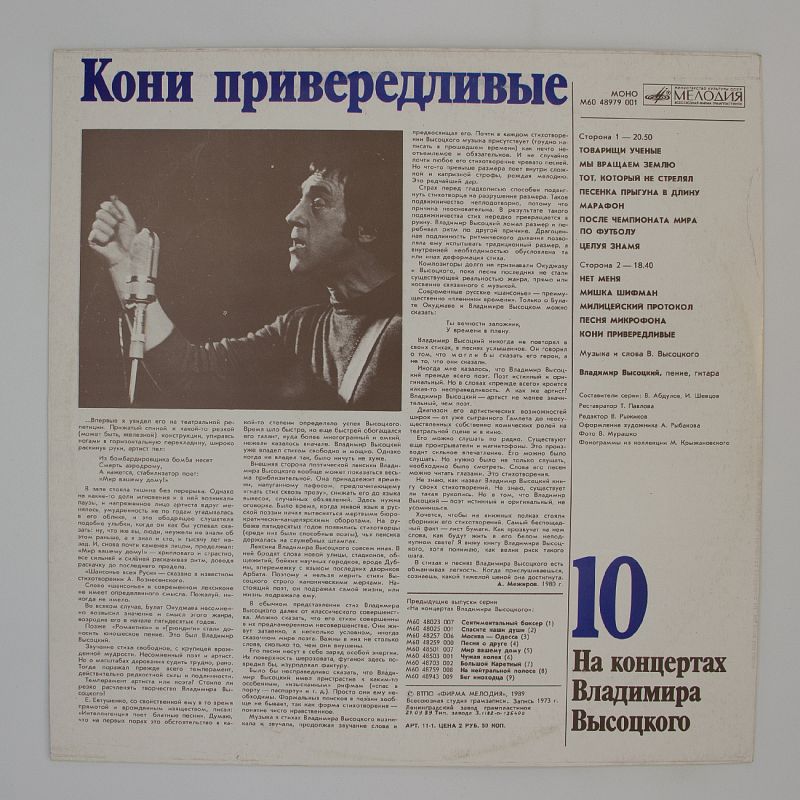 Успейте создать идеальный вечер с музыкой Высоцкого! Погрузитесь в тёплый аналоговый звук виниловой пластинки и почувствуйте каждую ноту. Не упустите возможность прикоснуться к легенде. Добавьте альбом «Кони привередливые» в корзину и подарите себе незабываемые музыкальные впечатления.