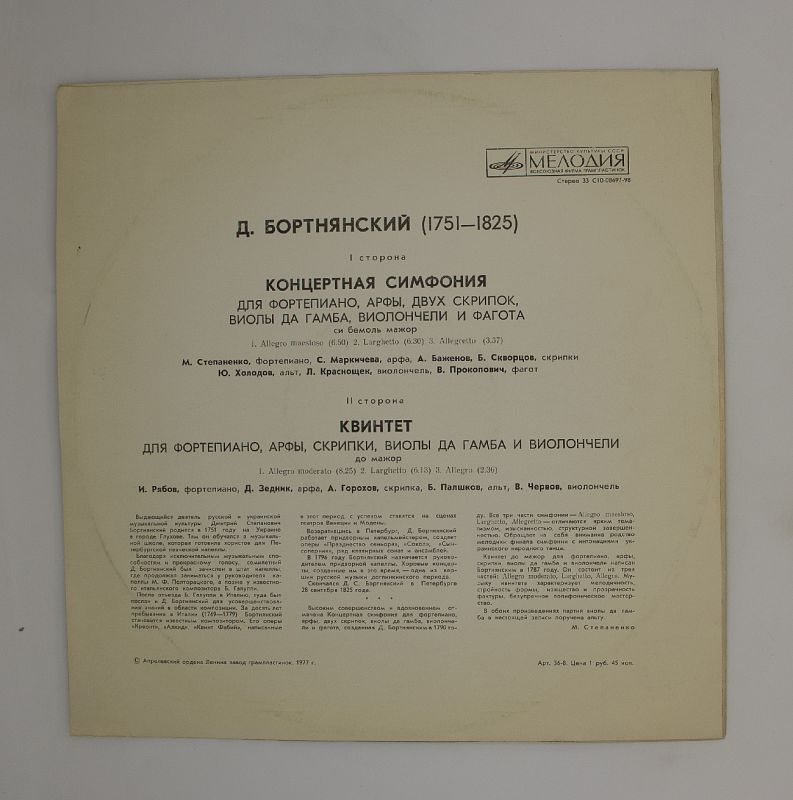 Концертная Симфония Для Фортепиано, Арфы, Двух Скрипок, Виолы Да Гамба, Виолончели И Фагота Си Бемоль Мажор