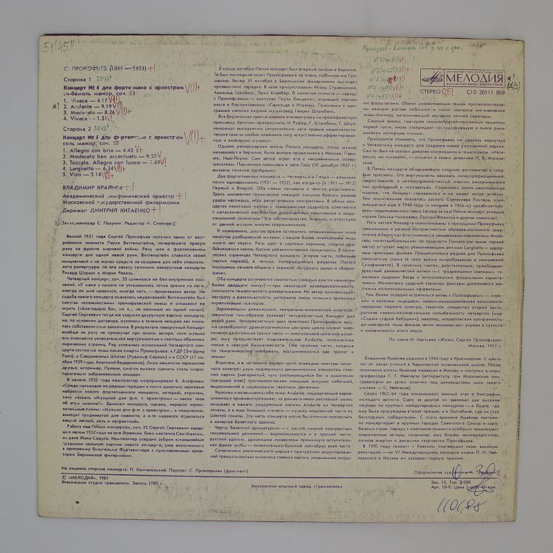 И вот у нас в магазине появилась новая пластинка — «Концерты для фортепиано с оркестром № 4, № 5» в исполнении В. Крайнева. Эти произведения отличаются глубиной и эмоциональностью, они переносят слушателя в мир музыки, где царит гармония и красота.