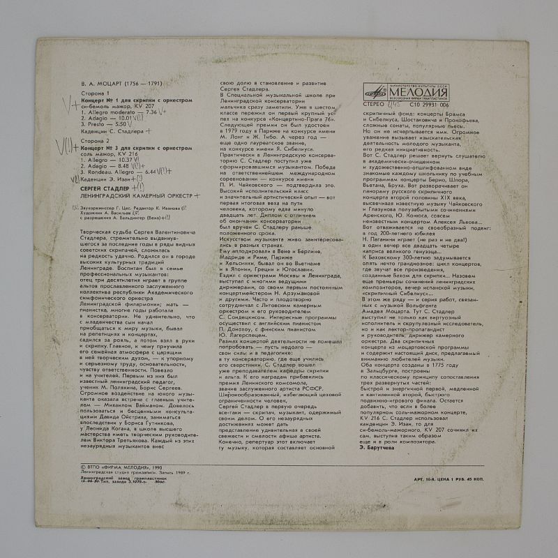 Сегодня в нашем магазине появилась уникальная пластинка — концерты для скрипки Вольфганга Амадея Моцарта, исполненные выдающимся музыкантом Сергеем Стадлером. Эти произведения переносят нас в эпоху великих композиторов и дарят возможность услышать музыку, которая покорила сердца слушателей ещё в XVIII веке.