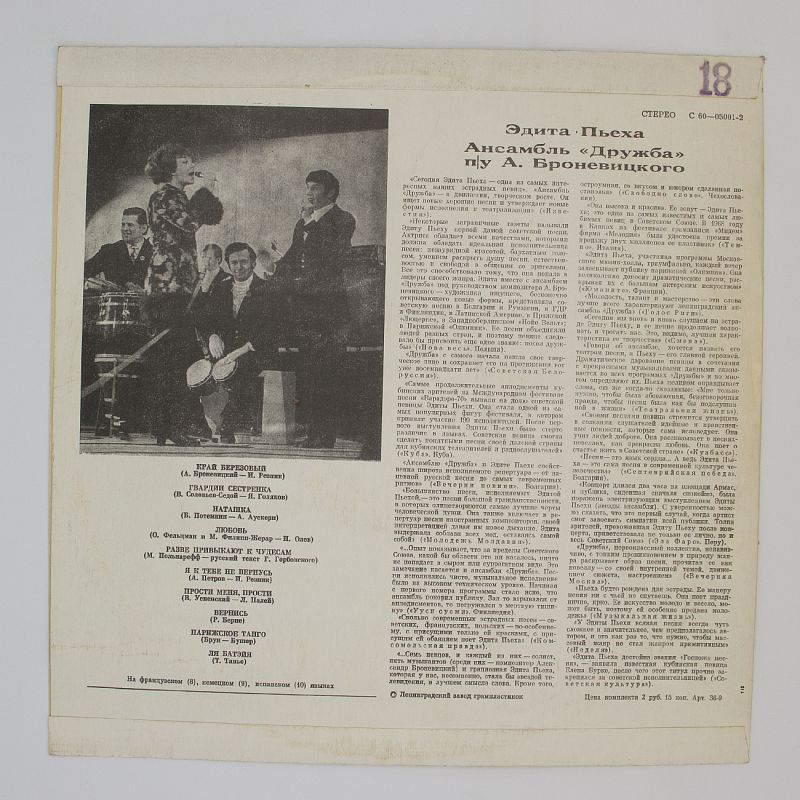 Погрузитесь в тёплый аналоговый звук винила и откройте для себя новые грани любимого исполнителя. Не упустите возможность создать идеальный вечер с музыкой Эдиты Пьехи. Добавьте альбом в корзину и подарите себе незабываемые моменты!