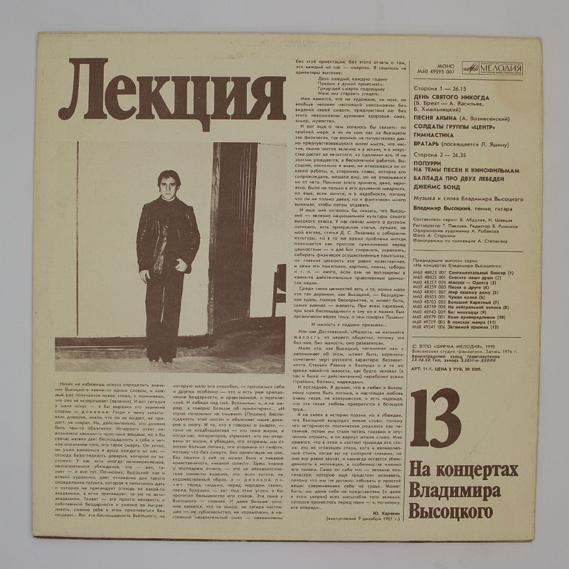 Владимир Высоцкий — один из самых ярких представителей авторской песни, чьи произведения до сих пор трогают сердца слушателей. Альбом «Лекция» — это не просто сборник песен, это настоящее путешествие по волнам времени и эмоций.