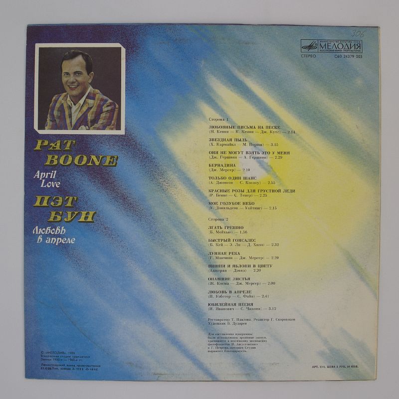 Погрузитесь в тёплый аналоговый звук виниловой пластинки и ощутите всю глубину и красоту музыки Пэт Буна. Этот альбом станет идеальным подарком для любого меломана или просто человека, который ценит настоящую музыку. Не упустите свой шанс создать идеальный вечер с «Любовью в апреле»!