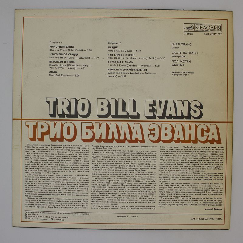 Трио Билла Эванса: «Минорный блюз» — пластинка, которая погрузит вас в мир джаза