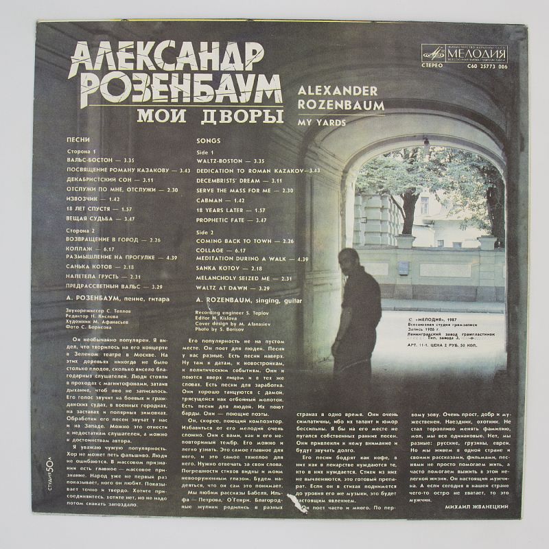Вдохновлённый атмосферой дворовых песен и мелодий, Розенбаум создал настоящий музыкальный калейдоскоп, который перенесёт вас в прошлое и заставит забыть о повседневных заботах. От «Вальса-Бостон» до «Санька Котов» — каждый трек наполнен эмоциями и жизненной силой.