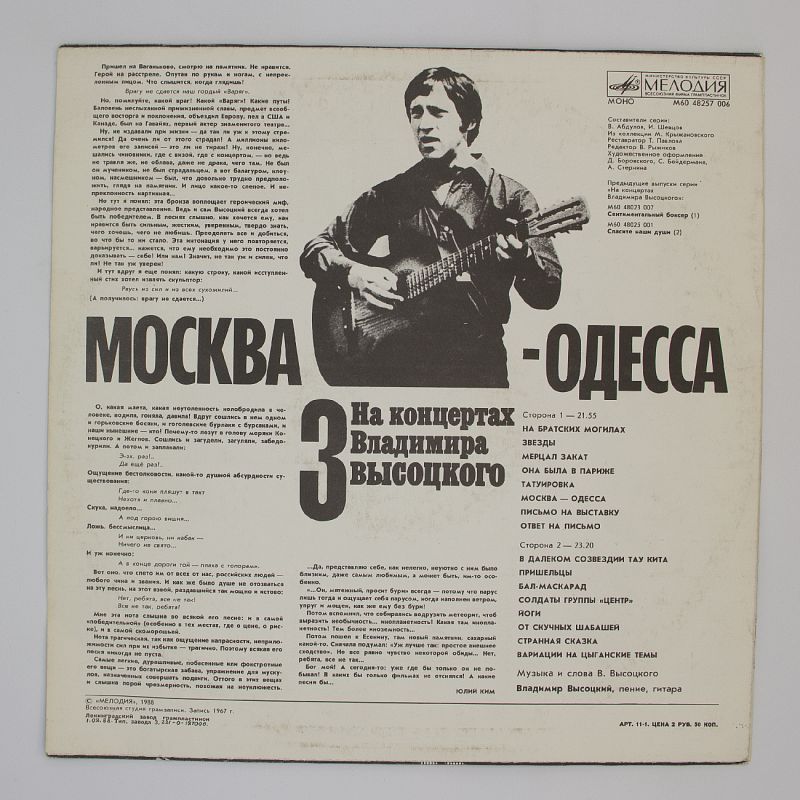Виниловая пластинка Владимир Высоцкий - Москва - одесса