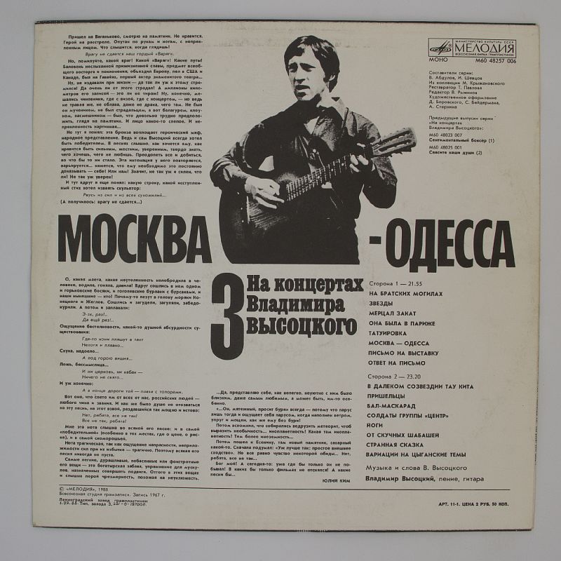 Владимир Высоцкий — легенда отечественной музыки, чьи песни до сих пор находят отклик в сердцах миллионов. Альбом «Москва — Одесса» — это не просто сборник песен, это история, рассказанная через музыку.