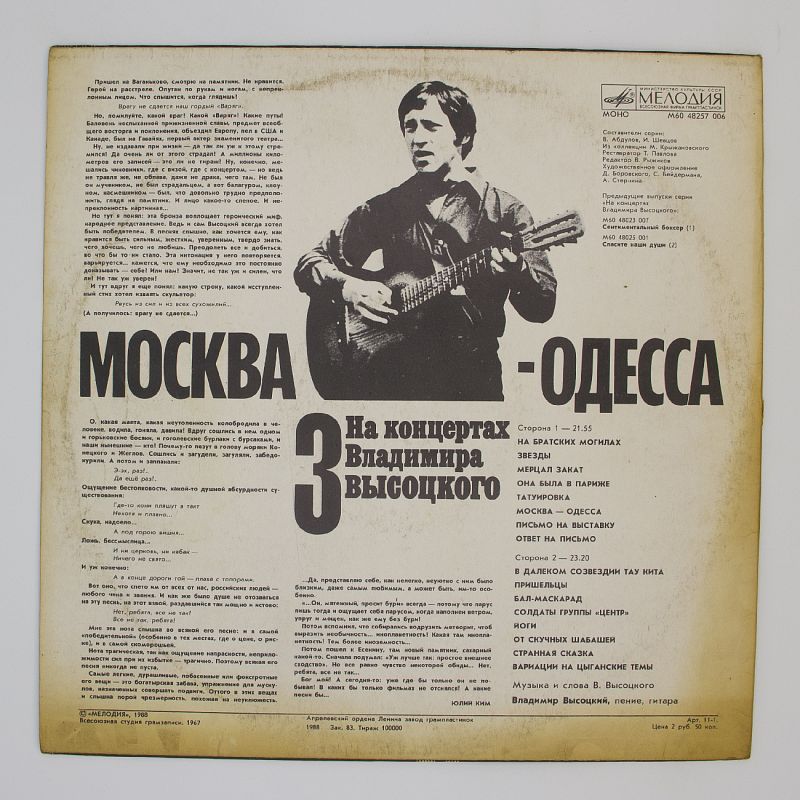 Виниловая пластинка Владимир Высоцкий - Москва - одесса