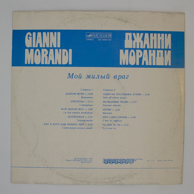 Джанни Моранди — один из самых ярких представителей итальянской эстрады, и его альбом «Мой Милый Враг» стал настоящим хитом. В этот сборник вошли композиции, которые покорили сердца миллионов слушателей.