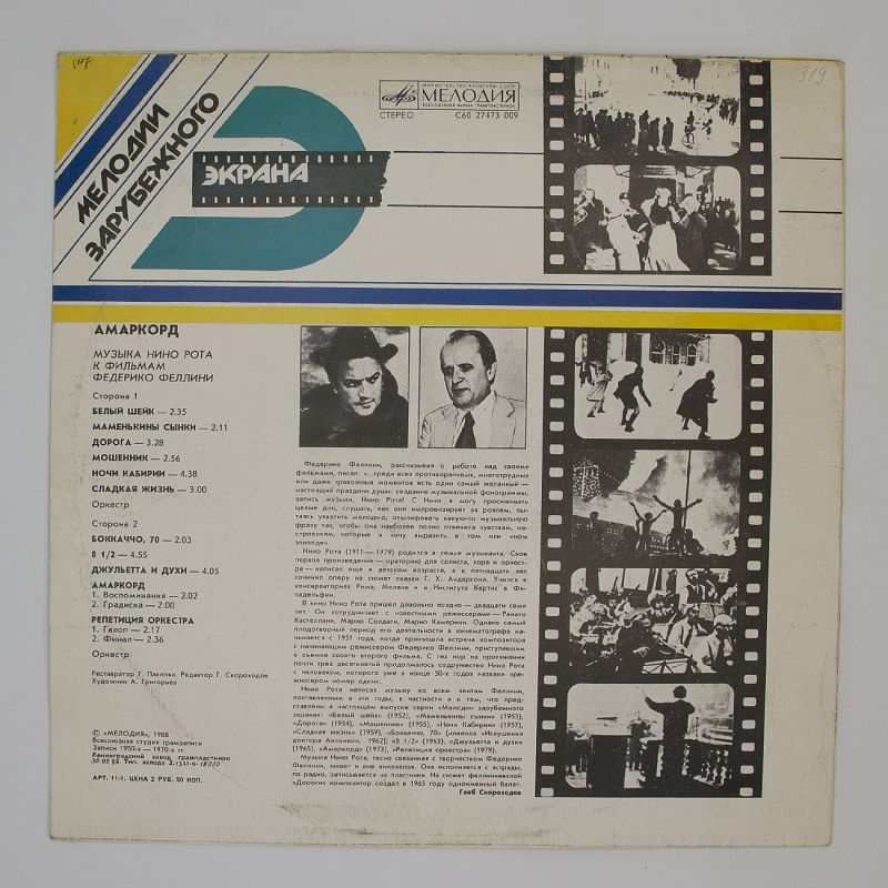Не упустите свой шанс погрузиться в тёплый аналоговый звук винила! Добавьте этот альбом в свою коллекцию и создайте идеальный вечер с музыкой Нино Рота. Успейте купить, пока есть в наличии!