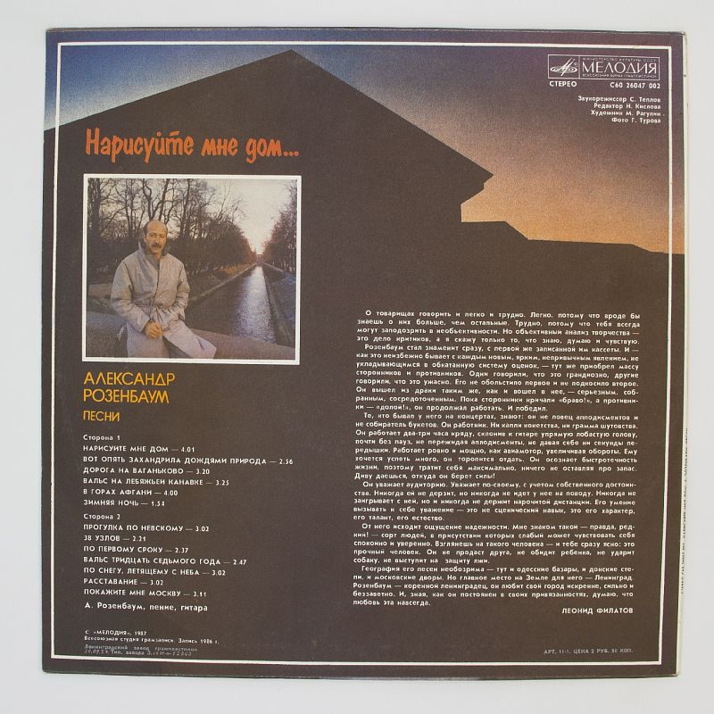 Александр Розенбаум — один из самых ярких представителей российского шансона. Его альбом «Нарисуйте мне дом...» — это не просто сборник песен, это целая история, наполненная эмоциями и переживаниями.