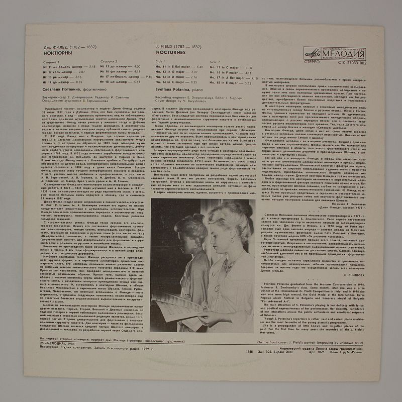 Альбом «Nocturnes Nos. 11-18» представляет собой коллекцию из восьми ноктюрнов, которые исполнила Светлана Потанина. Этот альбом позволит вам окунуться в атмосферу спокойствия и умиротворения, почувствовать обволакивающий и гипнотический характер музыки.