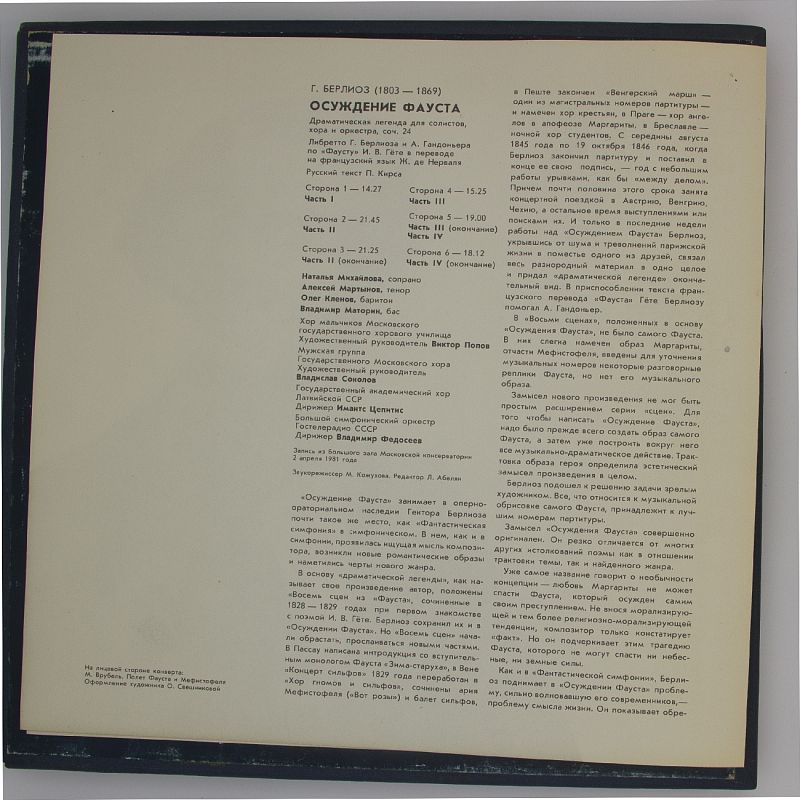 Не упустите возможность погрузиться в тёплый аналоговый звук и создать идеальный вечер с «Осуждение Фауста». Добавьте этот альбом в свою коллекцию и откройте для себя новые грани классической музыки. Успейте купить, пока есть в наличии!