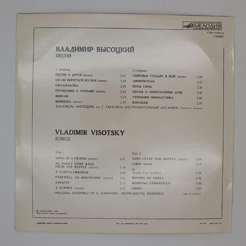 Не упустите возможность создать идеальный вечер с музыкой Высоцкого. Погрузитесь в тёплый аналоговый звук виниловой пластинки и ощутите всю глубину и мощь его песен. Добавьте альбом «Песни» в корзину и подарите себе незабываемые музыкальные впечатления.