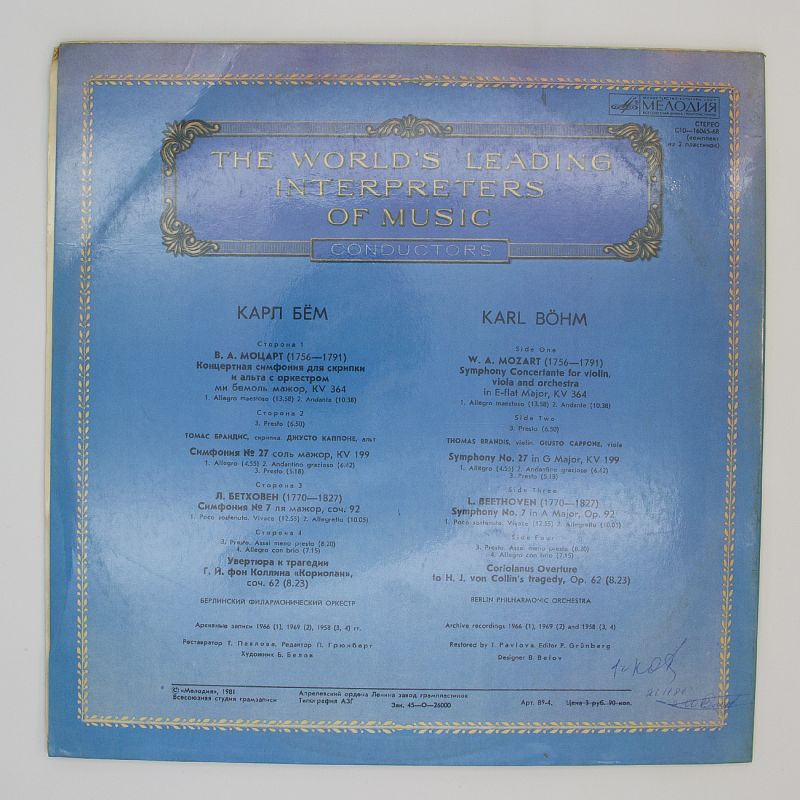 Волшебный мир классической музыки на виниле: произведения Моцарта и Бетховена под управлением Карла Бёма!