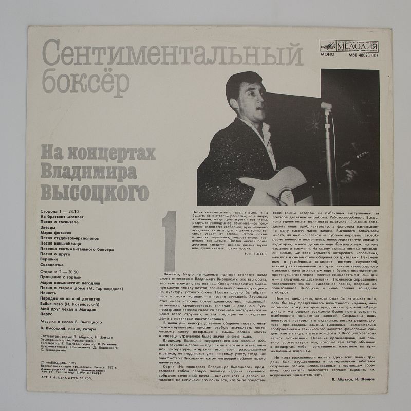 Обволакивающий голос Высоцкого, его неповторимая манера исполнения и тексты, полные эмоций и смысла, создают неповторимую атмосферу альбома. «Сентиментальный боксёр» — это не просто музыка, это настоящее путешествие по волнам чувств и эмоций.