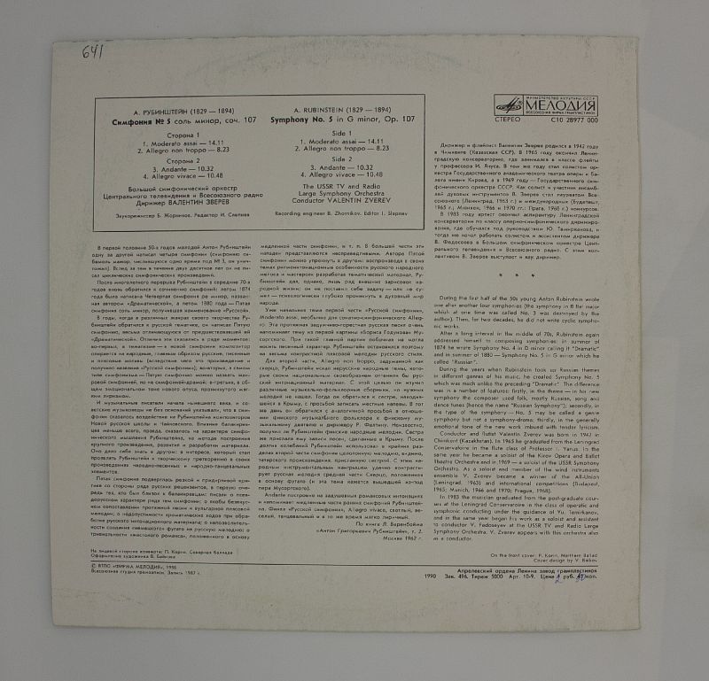 Не упустите возможность погрузиться в тёплый аналоговый звук виниловой пластинки и создать идеальный вечер с классической музыкой. Добавьте симфонию №5 А. Рубинштейна в свою коллекцию и наслаждайтесь великолепным звучанием!