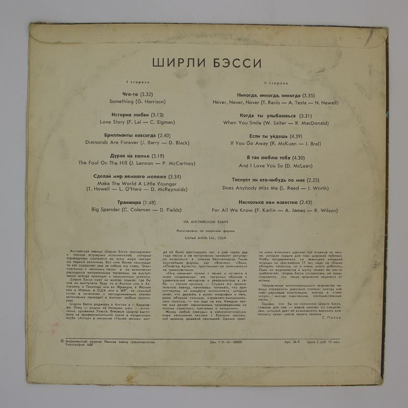 Ширли Бэсси — настоящая легенда эстрады! Альбом «Something» стал воплощением её уникального стиля и неподражаемого исполнения. Завораживающие мелодии и проникновенные тексты создают неповторимую атмосферу, которая не оставит равнодушным ни одного ценителя музыки.