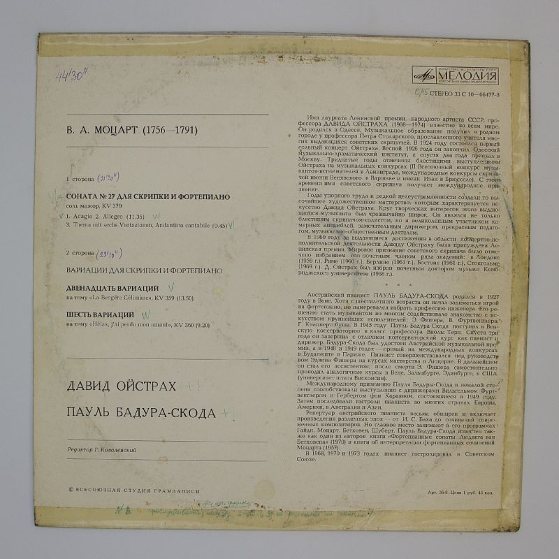 Исполняют Давид Ойстрах и Пауль Бадура-Скода.