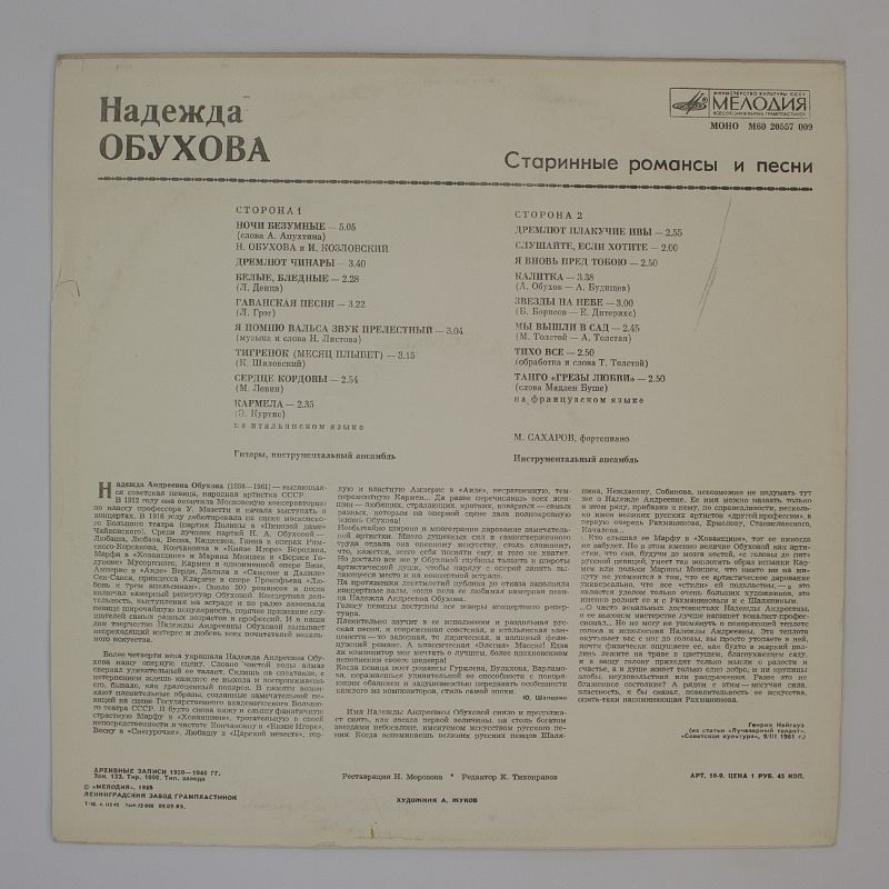 Надежда Обухова — выдающаяся певица, чьё имя стало символом высокого искусства и музыкального мастерства. Альбом «Старинные романсы и песни» — это не просто сборник композиций, это путешествие в эпоху, когда романсы были неотъемлемой частью культурного наследия.